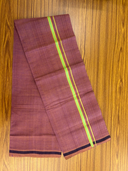 Handloom Single Hallmarked - 10% Discount !! KaithariKada 100% Pure Cotton - Mundu/Dhoti Purple & Parrot Green Body - 0.5 inch Black Kara- (2 meter / 4 muzham) - 44 KK8032 ELA