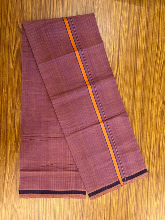 Handloom Single Hallmarked - 10% Discount !! KaithariKada 100% Pure Cotton - Mundu/Dhoti - Onion Pink Body - 0.75 inch Orange & Blue Stripes Kara- (2 meter / 4 muzham) - 51 KK8032 ELA