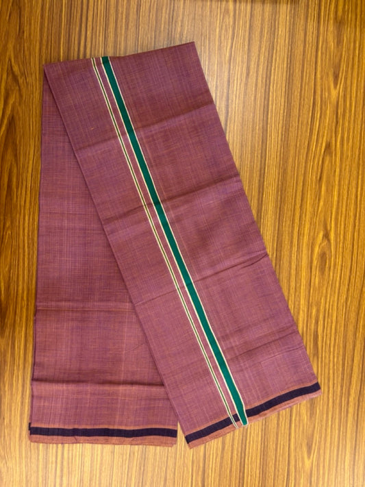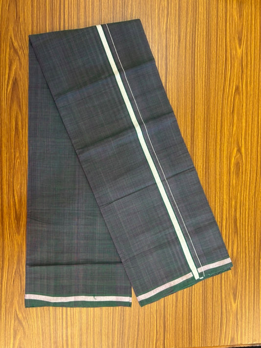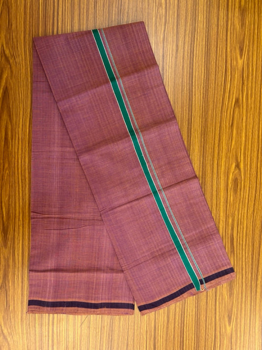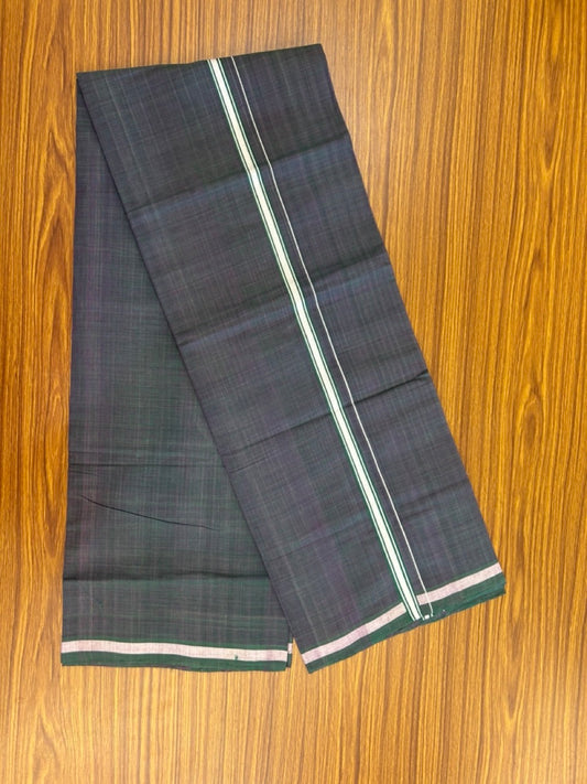 Handloom Single Hallmarked - 10% Discount !! KaithariKada 100% Pure Cotton - Mundu/Dhoti Purple Dark Green Body - 0.5 inch White Kara- (2 meter / 4 muzham) - 45 KK8032 ELA