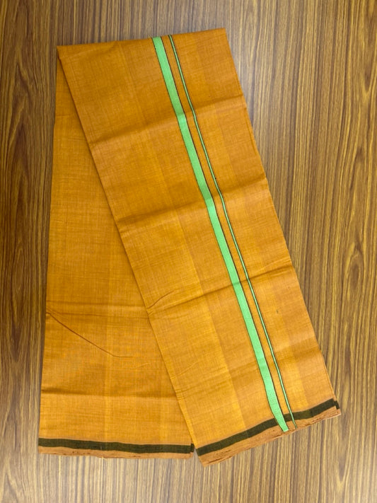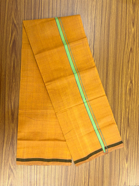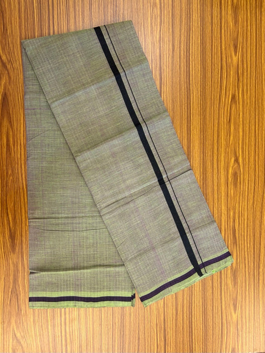 Handloom Single Hallmarked - 10% Discount !! KaithariKada 100% Pure Cotton - Mundu/Dhoti 0.5 inch Light Green & Black Kara with Kavi colour Body - (2 meter / 4 muzham) - 25 KK8032 ELA