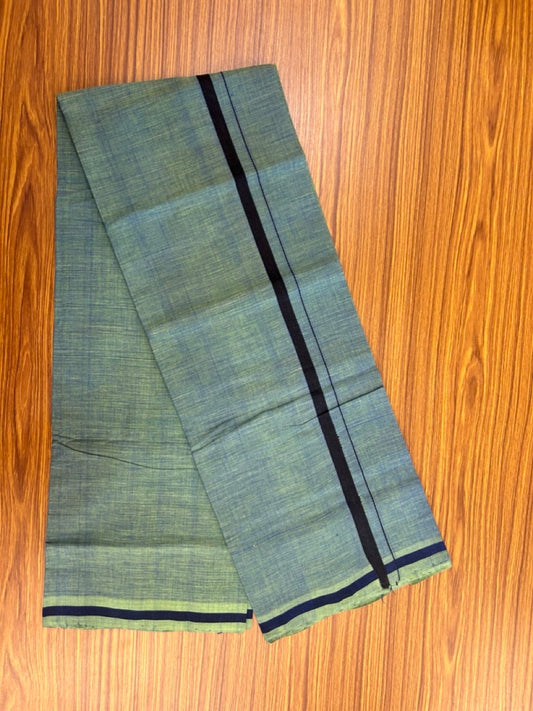 Handloom Single Hallmarked - 10% Discount !! KaithariKada 100% Pure Cotton - Mundu/Dhoti Blue Green Body - 0.5 inch Black Kara- (2 meter / 4 muzham) - 43 KK8032 ELA