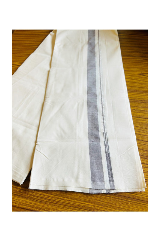 19% Discount !! KaithariKada Balaramapuram 100% Cotton Double Off White - (Unbleached) Mundu/Dhoti-100x100 1.25 inch Heavy Chutty Silver Kasavu & Black kara - 6KK5055ASH