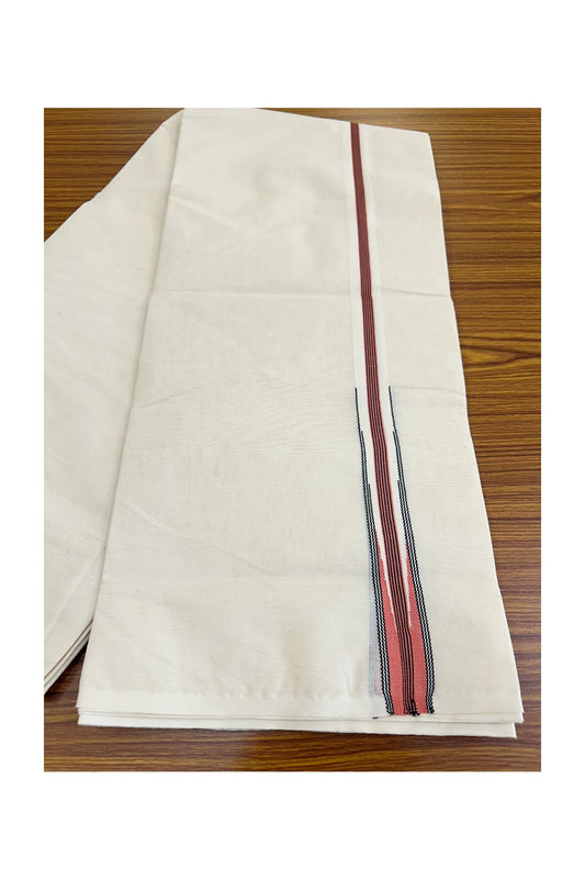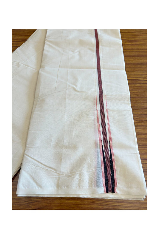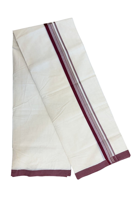 19% Discount! KaithariKada Balaramapuram 100% Cotton off white Double - (Unbleached) Mundu/Dhoti - 100X100 Maroon shaded kara with side stripes - 11KK81VIN