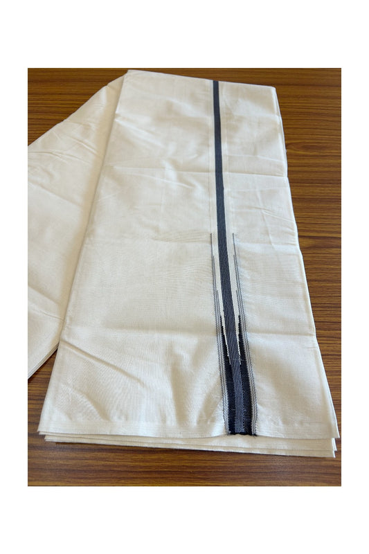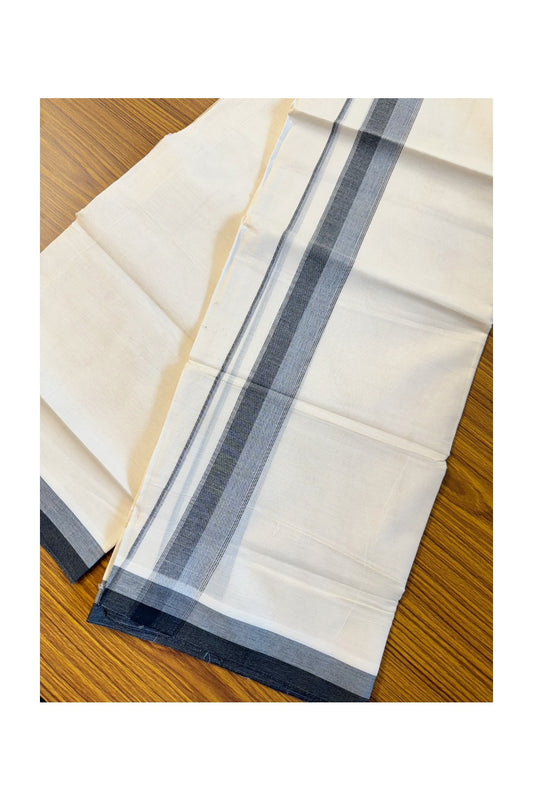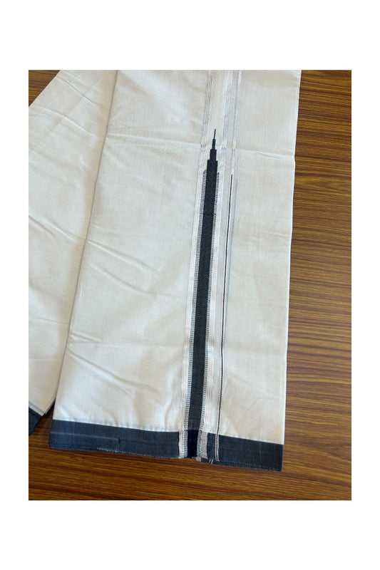 19% Discount! Balaramapuram Double Off white - (Unbleached) Mundu/Dhoti - 100X100 - 1 inch Puliyilakkara Dark ash & Black Striped Chutty Kara - 19KK5120ASH