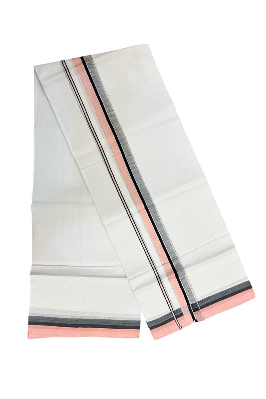 19% Discount! Balaramapuram Double Off white - (Unbleached) Mundu/Dhoti - 100X100 - 1 inch Puliyilakkara Peach pink & Black Striped Chutty Kara - 18KK5120ASH