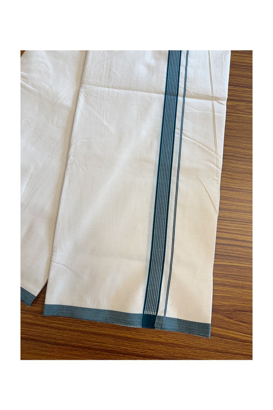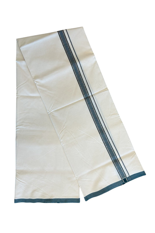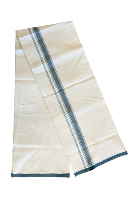 19% Discount! KaithariKada Balaramapuram 100% Cotton Double off white - (Unbleached) Mundu/Dhoti - 100X100 light blue & green shaded kara with centre stripes - 16KK81VIN