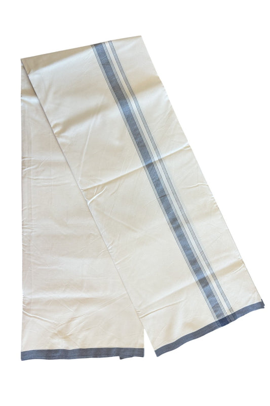 19% Discount KaithariKada Balaramapuram 100% Cotton Off White Double -(Unbleached) Mundu/Dhoti - 100x100 - 2 cm Puliyilakkara Chutty stripes Silver Kasavu & Peacock Blue Kara - 5
