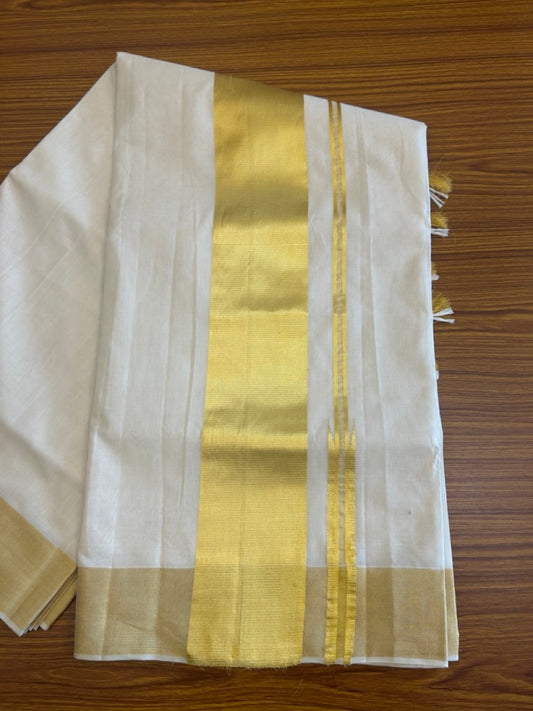 19% Discount !! KaithariKada Balaramapuram 100% Cotton Double Off white - (Unbleached) Mundu/Dhoti-100x80 - 1.5 cm Kasavu Kara - 5KK5187ASH