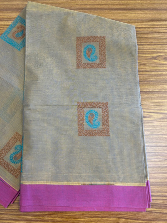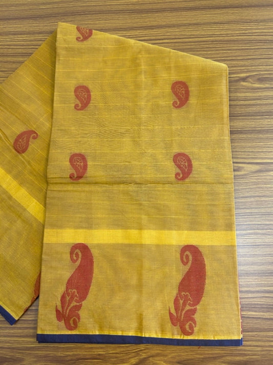 KaithariKada - Balaramapuram Cotton Saree - Dark Yellow with Brown & Peacock Green Mango Design - 7KK1006KK