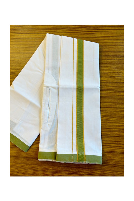 KaithariKada Balaramapuram COTTON SINGLE PURE WHITE VELCRO Mundu/Dhoti - 1.75inch Green & Kasavu kara (2 metre / 4 muzham)- 22KK485SRI