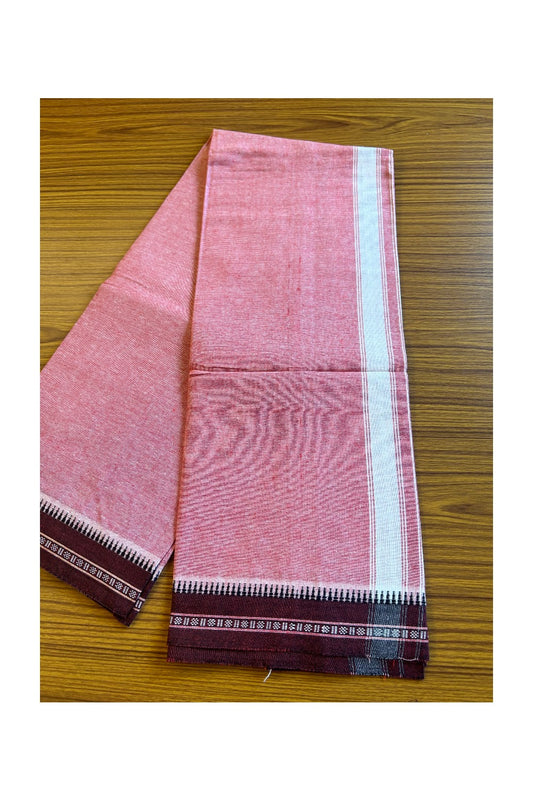KaithariKada Balaramapuram COTTON SINGLE PURE WHITE VELCRO Mundu/Dhoti - 1.75inch Pink & Kasavu kara (2 metre / 4 muzham)- 20KK485SRI