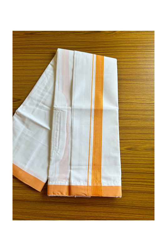 KaithariKada 100% Cotton Pure White Double Dhoti/Mundu 2.5inch Peach Border- 76.