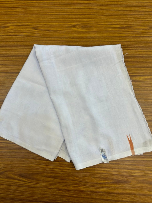 KaithariKada Balaramapuram COTTON SINGLE PURE WHITE VELCRO Mundu/Dhoti - 1.75inch Orange kara (2 metre / 4 muzham)- 5KK485SRI