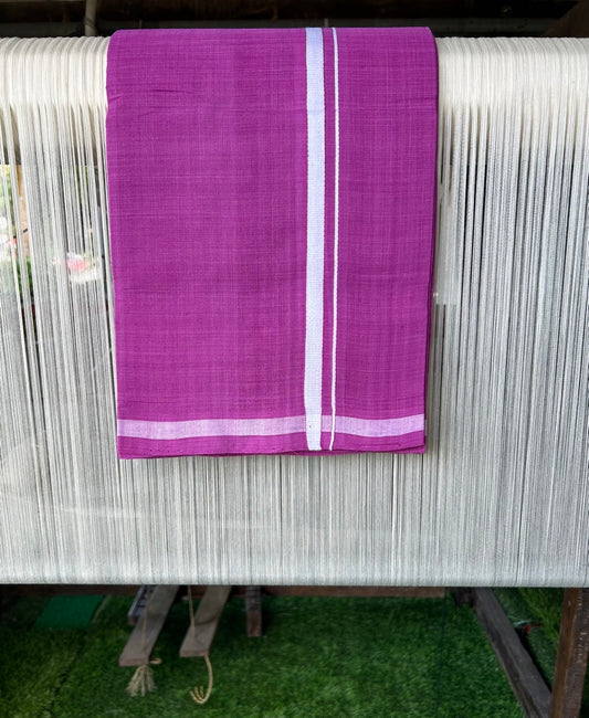 KaithariKada 100% Pure Cotton - Handloom Single Mundu/Dhoti Light Purple Colour Body & White 0.75 inch Kara- 9KK474VIN