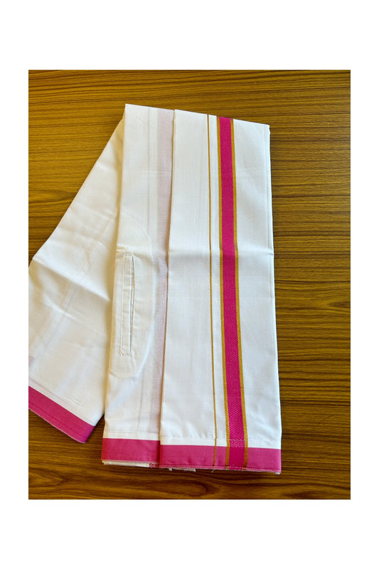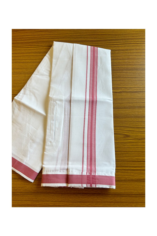 KaithariKada Balaramapuram COTTON SINGLE PURE WHITE VELCRO Mundu/Dhoti - 1.75inch Dark Pink & Kasavu kara (2 metre / 4 muzham)- 18KK485SRI