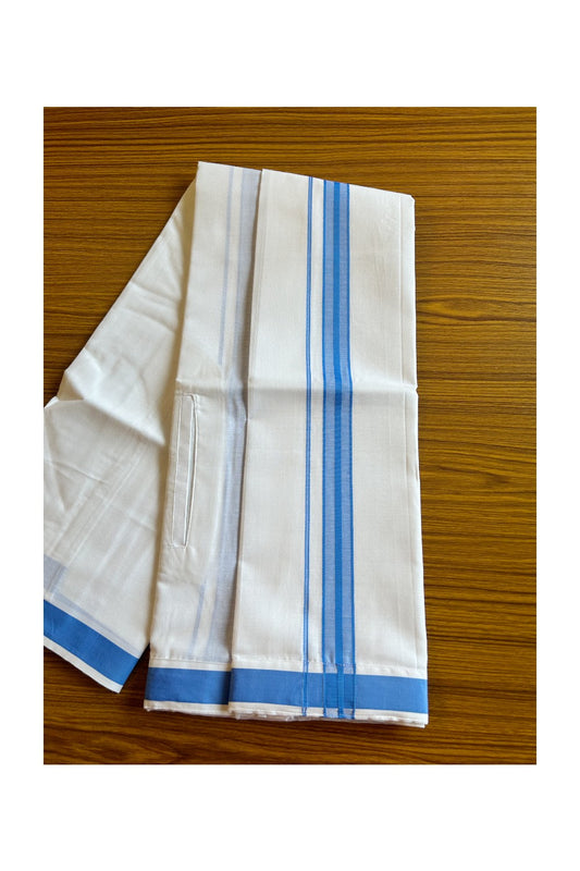 KaithariKada Balaramapuram COTTON SINGLE PURE WHITE VELCRO Mundu/Dhoti - 1.75inch Blue kara (2 metre / 4 muzham)- 14KK485SRI