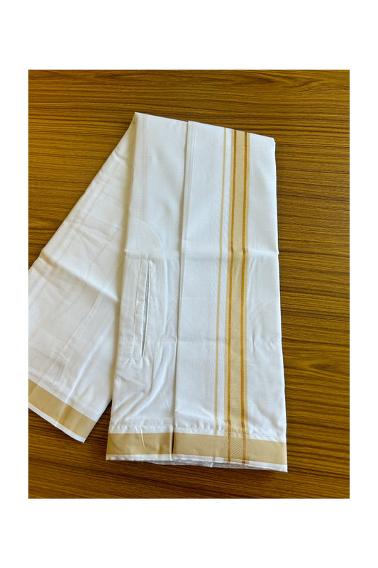 Kaitharikada Balaramapuram Pure Cotton Double Off White - (Unbleached) Mundu/Dhoti - 60s - 1.75 inch Gold Kasav Jacquard Design Kara 4 mtr (8.5 muzham) - 17 KK5281 GAN
