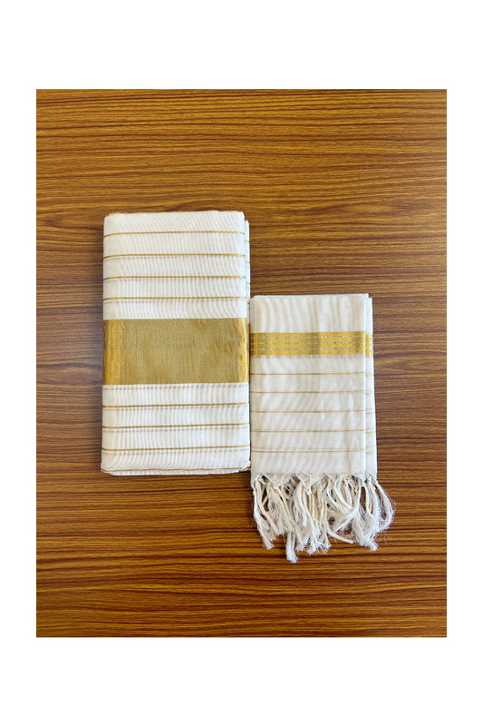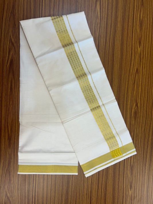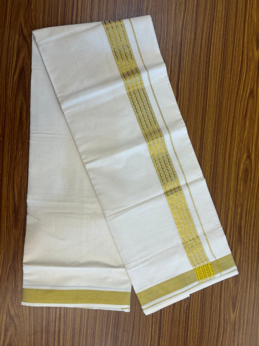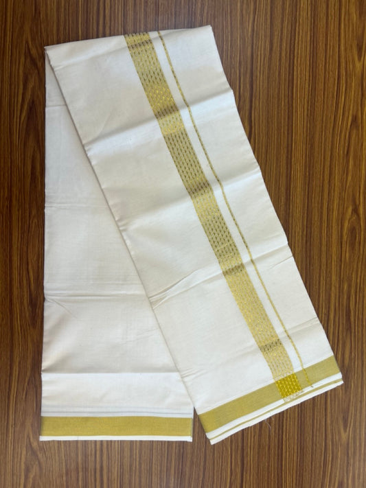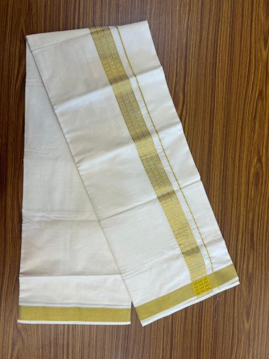 Kaitharikada Balaramapuram Pure Cotton Double Off White - (Unbleached) Mundu/Dhoti - 60s - 1.5 inch Gold Kasav Jacquard Design Kara 4 mtr (8.5 muzham) - 10 KK5281 GAN