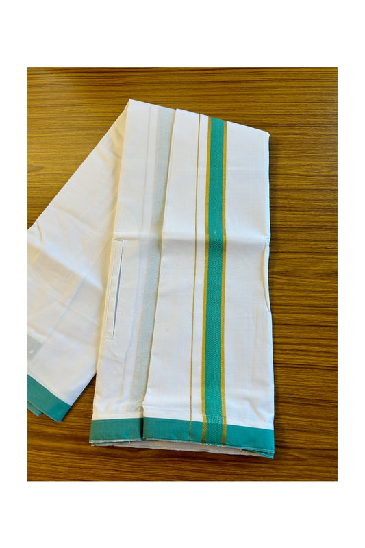 KaithariKada Balaramapuram COTTON SINGLE PURE WHITE VELCRO Mundu/Dhoti - 1.75inch Peacock Blue & Kasavu kara (2 metre / 4 muzham) - 17KK485SRI