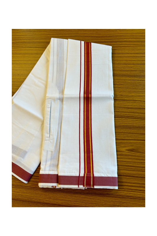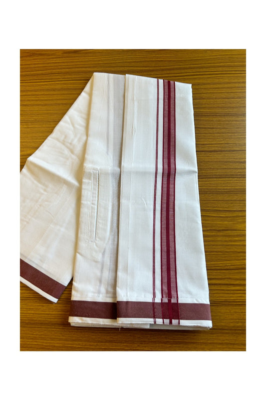 KaithariKada Balaramapuram COTTON SINGLE PURE WHITE VELCRO Mundu/Dhoti - 1.75inch Maroon & Kasavu kara (2 metre / 4 muzham)- 25KK485SRI