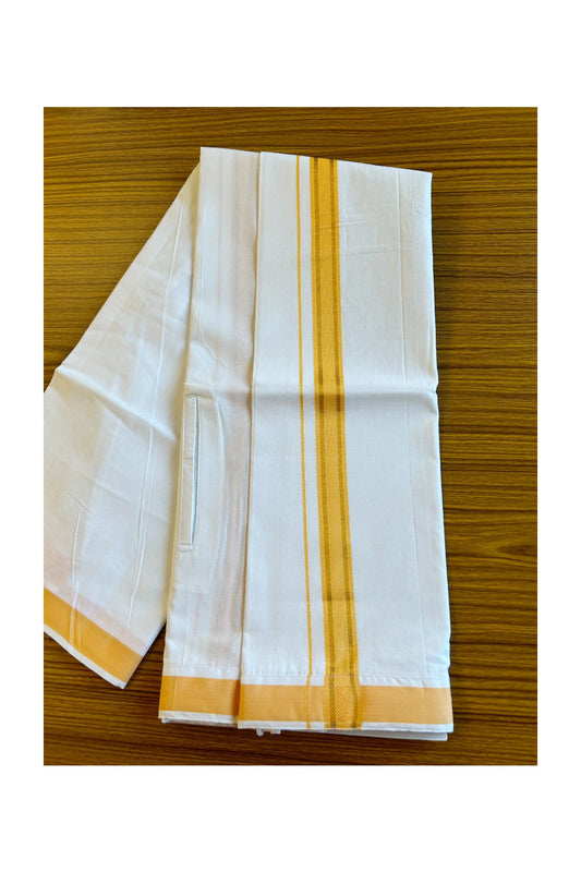 KaithariKada Balaramapuram COTTON SINGLE PURE WHITE VELCRO Mundu/Dhoti - 1.75inch Orange & Kasavu kara (2 metre / 4 muzham) - 27KK485SRI