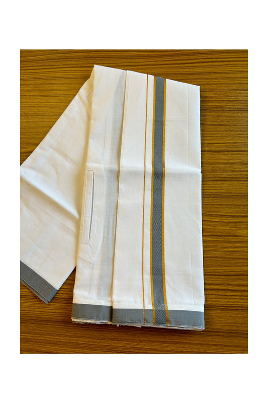 KaithariKada Balaramapuram COTTON SINGLE PURE WHITE VELCRO Mundu/Dhoti - 1.75inch Ash Grey & Kasavu kara (2 metre / 4 muzham) - 30KK485SRI