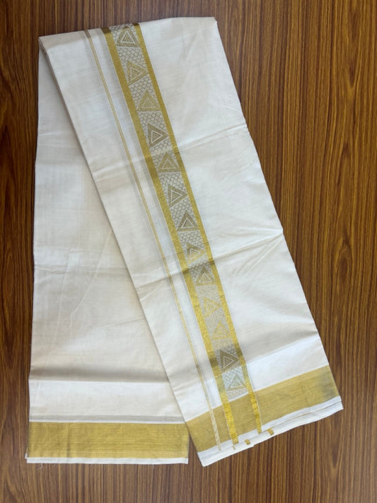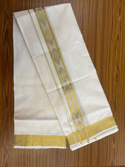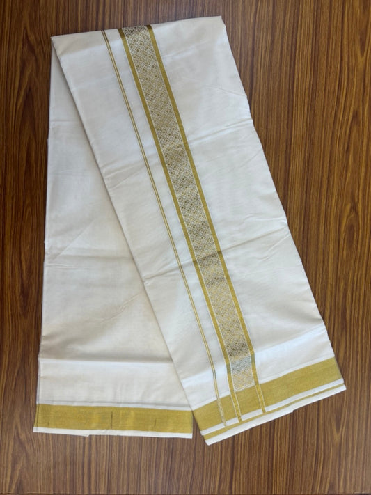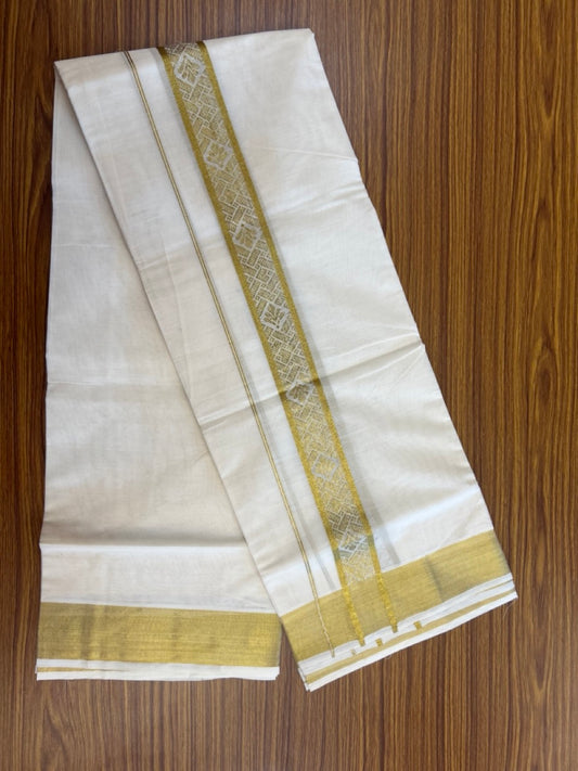 Kaitharikada Balaramapuram Pure Cotton Double Off White - (Unbleached) Mundu/Dhoti - 60s - 1.75 inch Gold Kasav Jacquard Big Design Kara 4 mtr (8.5 muzham) - 13 KK5281 GAN