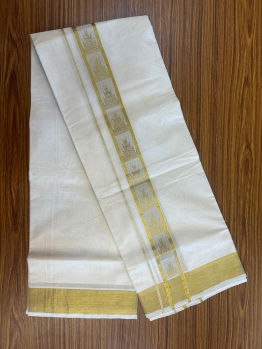 KaithariKada Balaramapuram Pure Cotton Double Off White - (Unbleached) Mundu/Dhoti - 60s - 1.75 inch Gold Kasav Jacquard Big Design Kara 4 mtr (8.5 muzham) - 15 KK5281 GAN