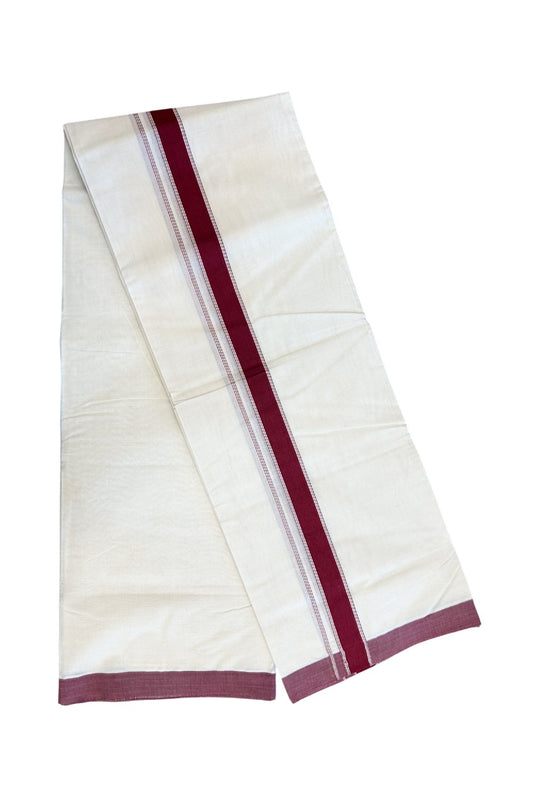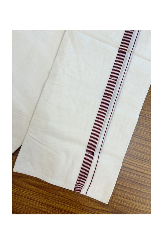 NEW !! 20% DISCOUNT!! KaithariKada Balaramapuram 100% Cotton Double Off white - (Unbleached) Mundu/Dhoti-100x80 - 1.25 inch Maroon Striped KARA - 3.75 mtr (8 Muzham) - 1KK5218 ASH