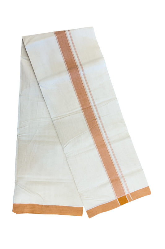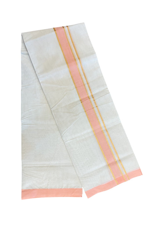 New !! 20% Discount!! KaithariKada Balaramapuram 100% Cotton Double Off white - (Unbleached) Mundu/Dhoti-100x80 - 1.5 inch Gold Kasav & Peach Shaded Striped KARA - 3.75 mtr (8 Muzham) - 10KK5218 ASH