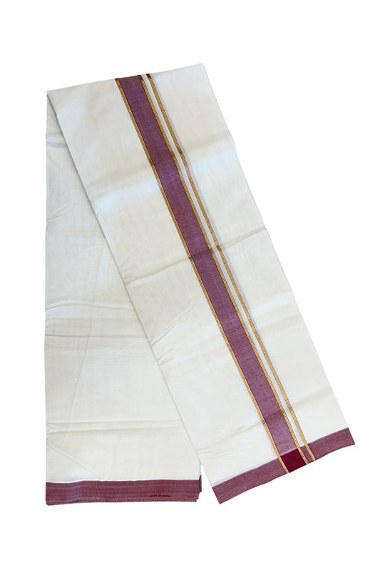 New !! 20% Discount!! KaithariKada Balaramapuram 100% Cotton Double Off white - (Unbleached) Mundu/Dhoti-100x80 - 1.5 inch Gold Kasav & Maroon Shaded Striped KARA - 3.75 mtr (8 Muzham) - 11KK5218 ASH