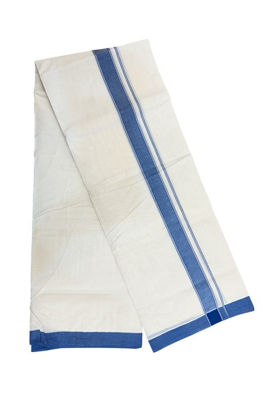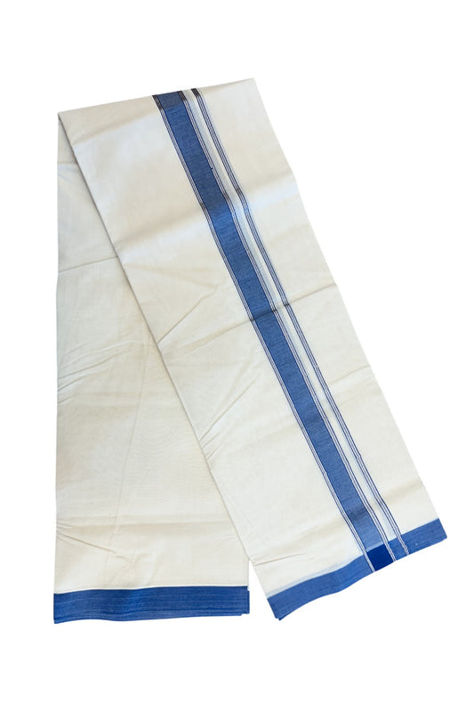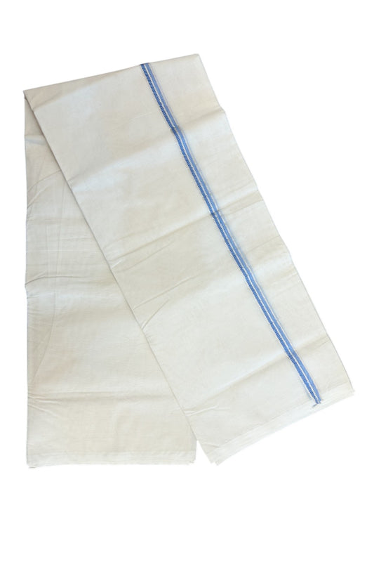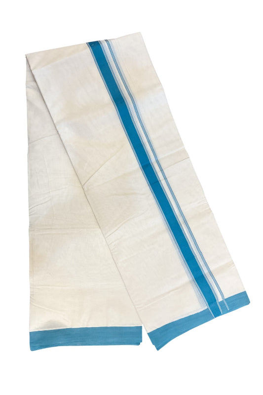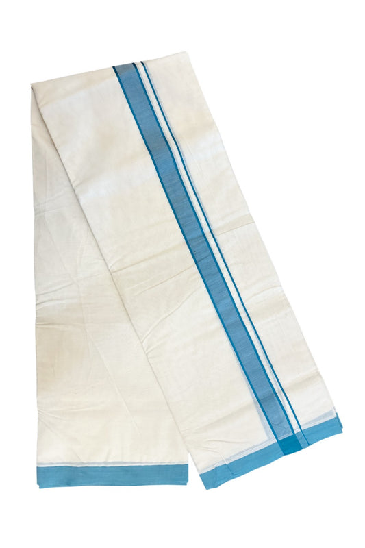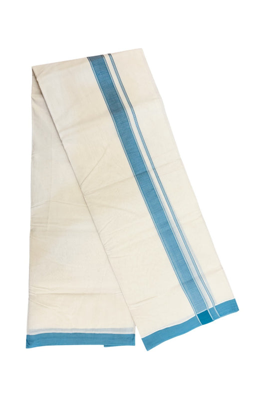 New !! 20% Discount!! KaithariKada Balaramapuram 100% Cotton Double Off white - (Unbleached) Mundu/Dhoti-100x80 - 1.25 inch Teal Blue Shaded KARA - 3.75 mtr (8 Muzham) - 25KK5218 ASH