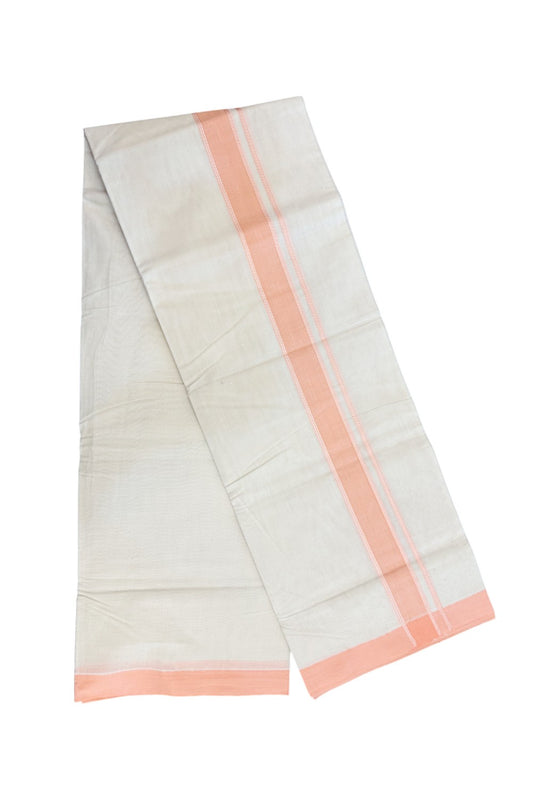NEW !! 20% DISCOUNT!! KaithariKada Balaramapuram 100% Cotton Double Off white - (Unbleached) Mundu/Dhoti-100x80 - 1.5 inch Peach Shaded Striped KARA - 3.75 mtr (8 Muzham) - 2KK5218 ASH