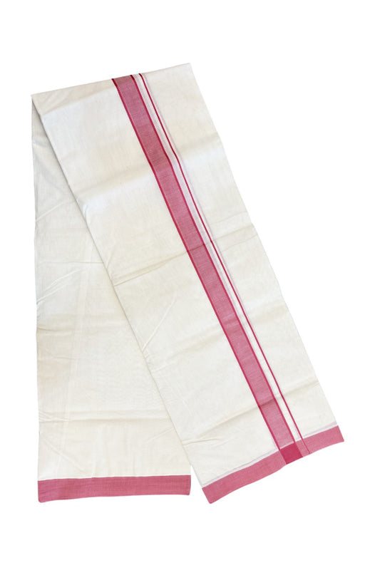 NEW !! 20% DISCOUNT!! KaithariKada Balaramapuram 100% Cotton Double Off white - (Unbleached) Mundu/Dhoti-100x80 - 1.25 inch Dark Rose Pink Shaded Striped KARA - 3.75 mtr (8 Muzham) - 3KK5218 ASH