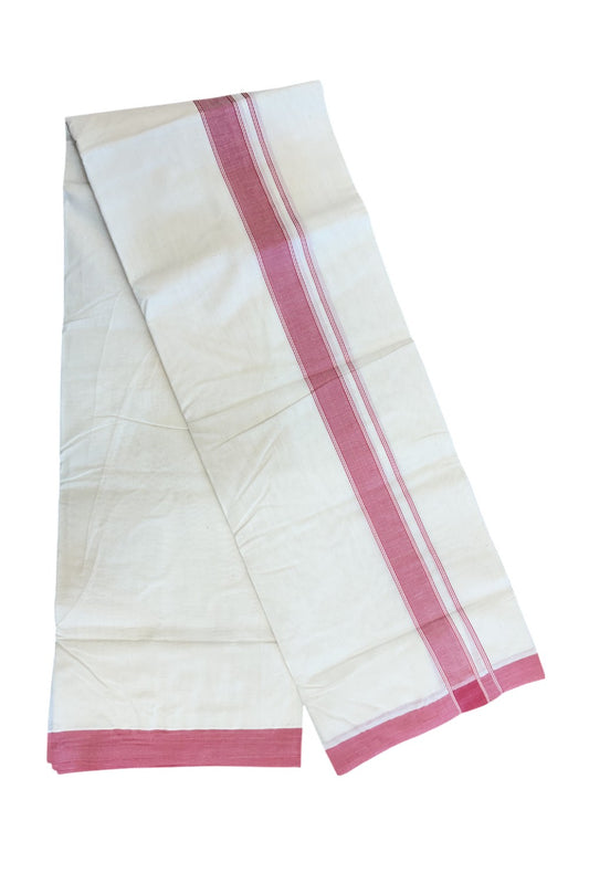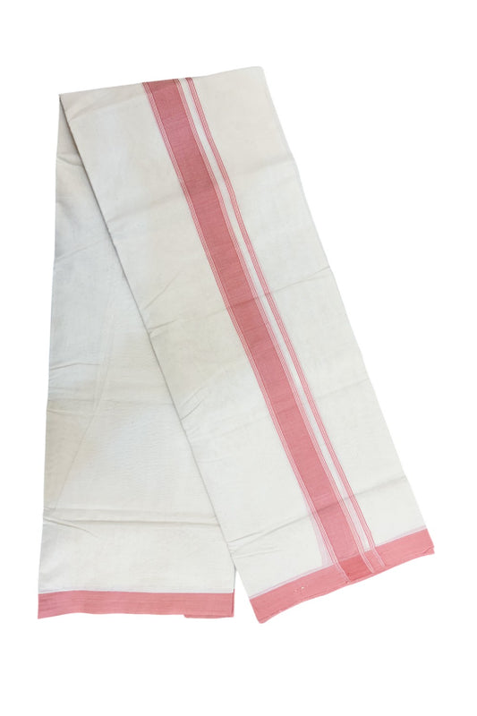 New !! 20% Discount!! KaithariKada Balaramapuram 100% Cotton Double Off white - (Unbleached) Mundu/Dhoti-100x80 - 1.25 inch Rose Pink Shaded KARA - 3.75 mtr (8 Muzham) - 24KK5218 ASH