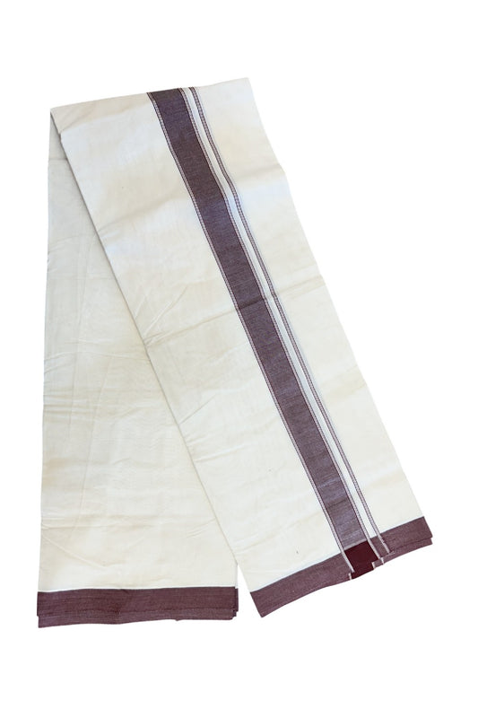New !! 20% Discount!! KaithariKada Balaramapuram 100% Cotton Double Off white - (Unbleached) Mundu/Dhoti-100x80 - 1.5 inch Brown Shaded Striped KARA - 3.75 mtr (8 Muzham) - 8KK5218 ASH