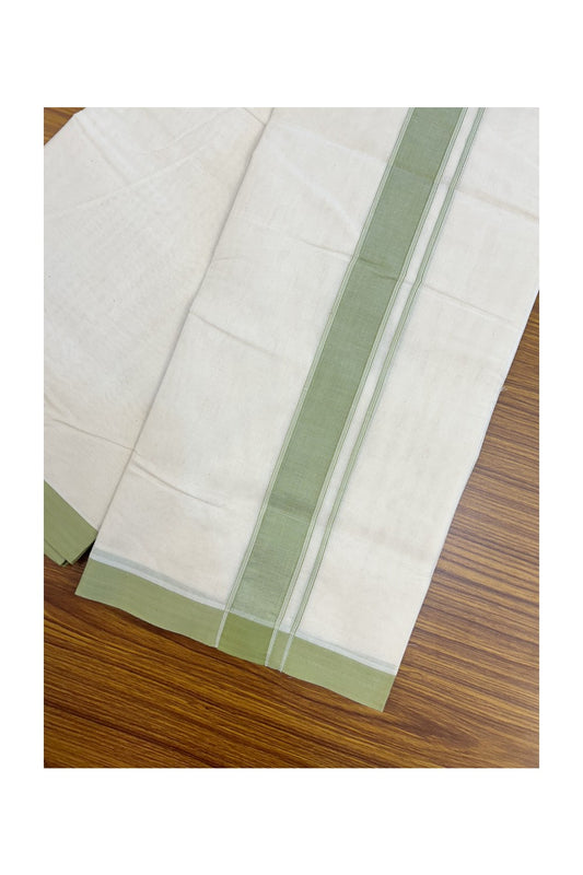 New !! 20% Discount!! KaithariKada Balaramapuram 100% Cotton Double Off white - (Unbleached) Mundu/Dhoti-100x80 - 1.5 inch Sage Green Striped KARA - 3.75 mtr (8 Muzham) - 15KK5226 ASH