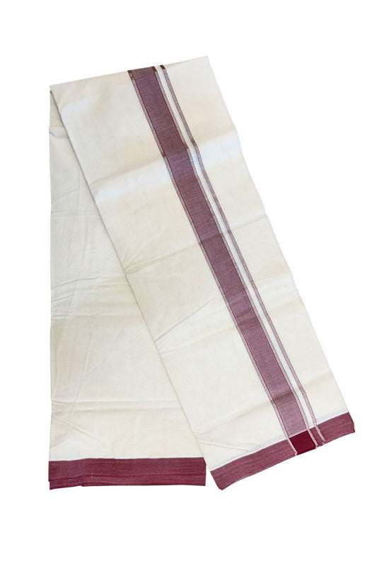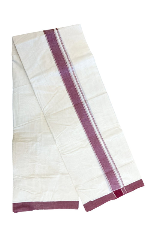 New !! 20% Discount!! KaithariKada Balaramapuram 100% Cotton Double Off white - (Unbleached) Mundu/Dhoti-100x80 - 1.5 inch Silver Kasav & Maroon Shaded Striped KARA - 3.75 mtr (8 Muzham) - 22KK5218 ASH