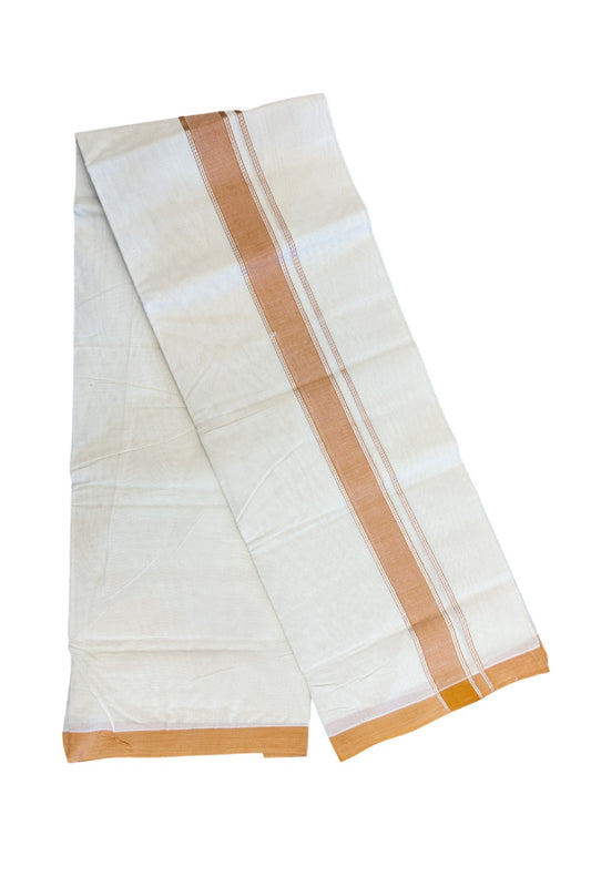New !! 20% Discount!! KaithariKada Balaramapuram 100% Cotton Double Off white - (Unbleached) Mundu/Dhoti-100x80 - 1.5 inch Silver Kasav & Light Orange Shaded Striped KARA - 3.75 mtr (8 Muzham) - 20KK5218 ASH