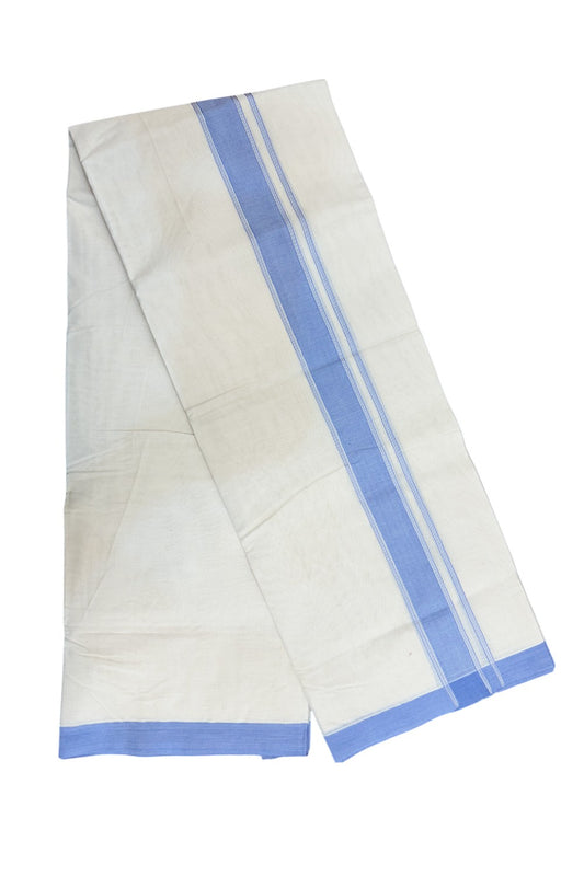 New !! 20% Discount!! KaithariKada Balaramapuram 100% Cotton Double Off white - (Unbleached) Mundu/Dhoti-100x80 - 1.75 inch Lavender Blue Shaded Striped KARA - 3.75 mtr (8 Muzham) - 7KK5218 ASH