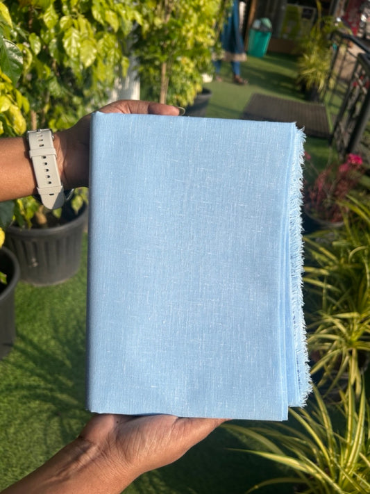 NEW! Kaitharikada - LINEN TOUCH (cotton) Shirt Material - Baby blue 200x150(cm) (₹ 300 per meter) - 1KK7005MKS