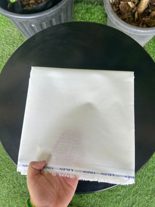 NEW! Kaitharikada - PURE White LINEN TOUCH (cotton) Shirt Material - 200x150(cm) (₹ 300 per meter) - 2KK7006MKS