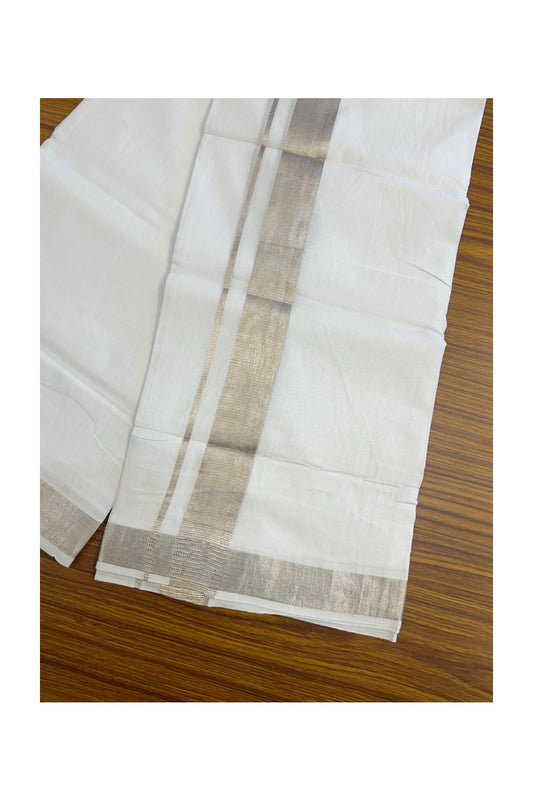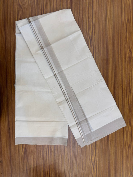19% Discount! KaithariKada Balaramapuram 100% Cotton Off white Double Mundu/Dhoti - (100x80)s - 1.5 inch Puliyilakkara Light Brown Stripes Chutty Silver Kasav - 140 KK5258 THI