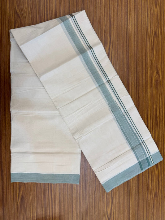 19% DISCOUNT! KaithariKada Balaramapuram 100% Cotton Off white (Unbleached) Double Mundu/Dhoti-100x100 1.75inch Blue Green Striped Design kara - 14KK5110THI
