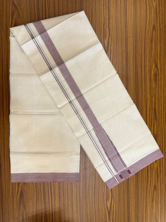 19% Discount! KaithariKada Balaramapuram 100% Cotton Off white Double Mundu/Dhoti - (100x80)s - 1.5 inch Puliyilakkara Dark Violet Stripes Chutty Gold Kasav - 141 KK5258 THI