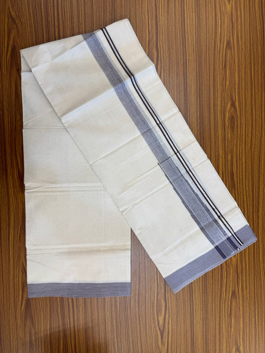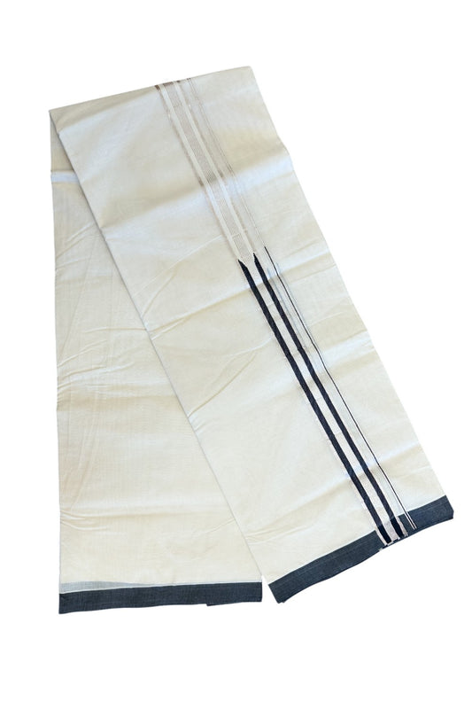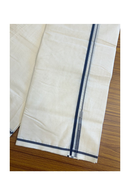 19% DISCOUNT!! KaithariKada Balaramapuram 100% Cotton off white (Unbleached) Double Mundu/Dhoti-100x100 1.cm Navy Blue Puliyilakkara Chutty - 5KK5130ASH