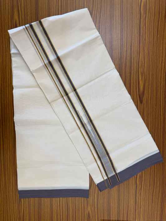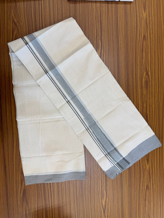 19% Discount! KaithariKada Balaramapuram 100% Cotton off white Double - (Unbleached) Mundu/Dhoti - 100X100 Black stripes & Ash grey shaded kara - 6KK81VIN