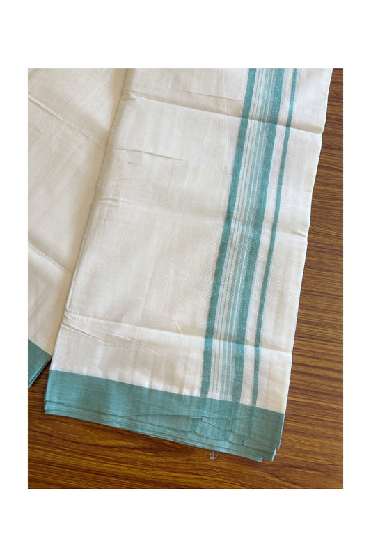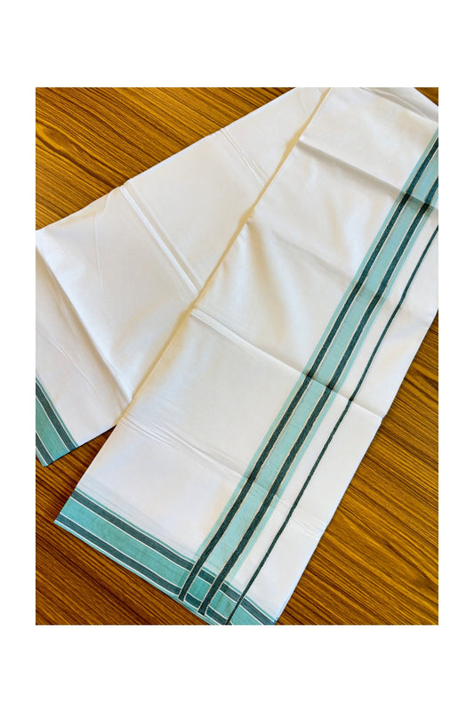 19% Discount!! KaithariKada Balaramapuram 100% Cotton Double Pure White Mund/Dhoti-100x100 2.5 Inch Silver kasavu turquoise+green shaded kara - 16KK83VIN