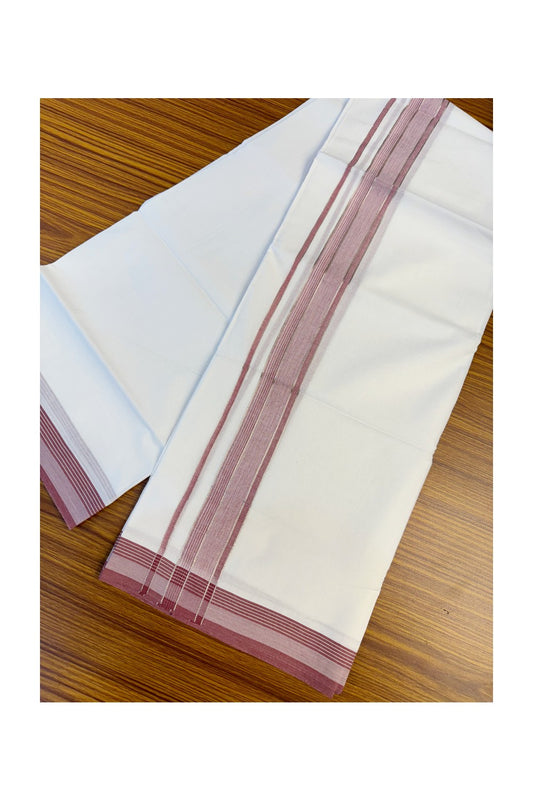 19% Discount!! KaithariKada Balaramapuram 100% Cotton Double Pure white Mund/Dhoti-100x100 2 Inch Silver kasav white stripes & maroon shaded Kara - 6KK83VIN