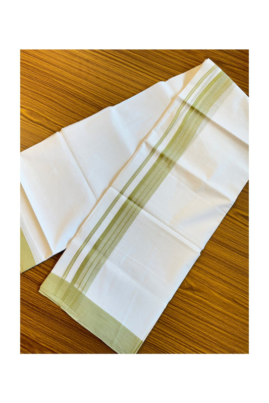 19% Discount!! KaithariKada Balaramapuram 100% Cotton Double Pure white Mundu/Dhoti-100x100 2.25 Inch Olive green shaded kara - 73KK83VIN